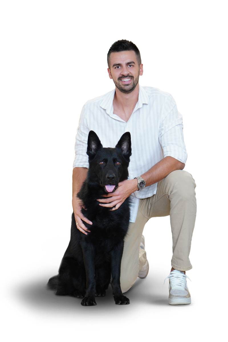 My name is Nikola and I am the owner of Digital Portraits. You can see Max with me in the photo; he has been with me from the beginning and is also a partial inspiration for starting my business. You see, I initially started creating portraits of pets (hence the original name), but as I increasingly perfected the processing and digital montage techniques, I began creating family portraits as well.