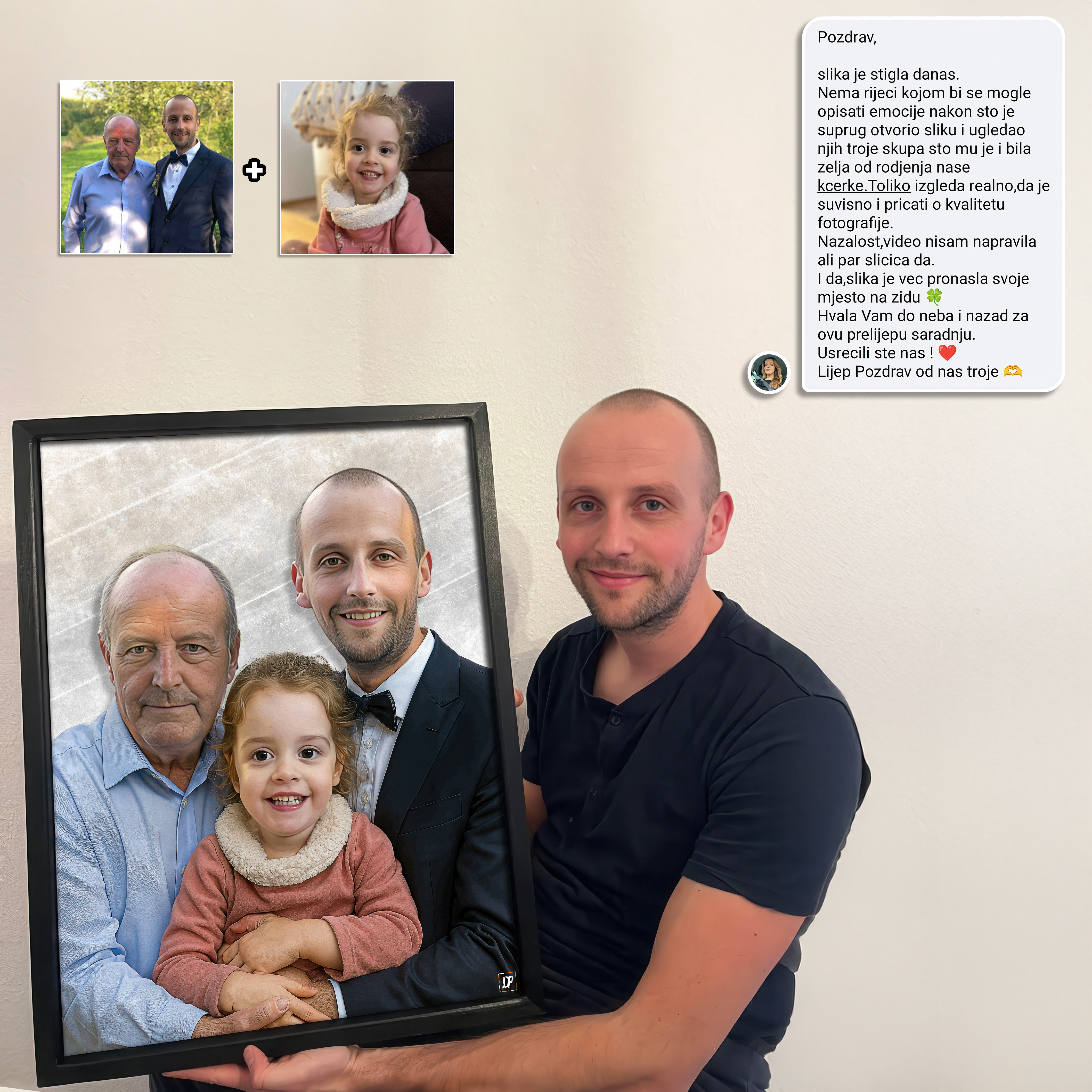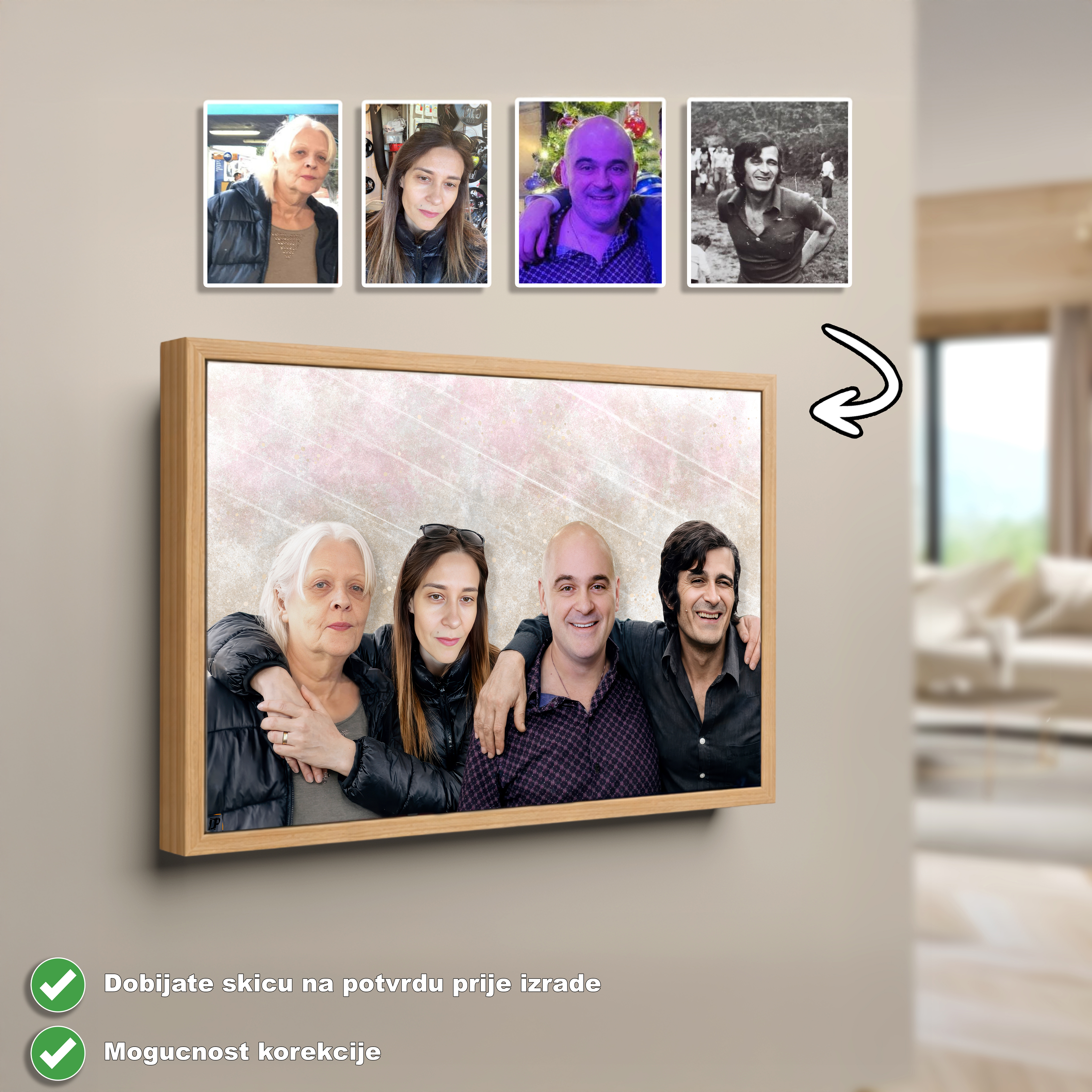 We carefully choose background tones and subtle transitions so that each individual portrait retains its character, while simultaneously playing harmoniously with the others on the canvas. The result is a harmonious story about your family, woven into a unique realistic, emotional portrait, a wall decoration that transforms individual moments into a shared, eternal memory.