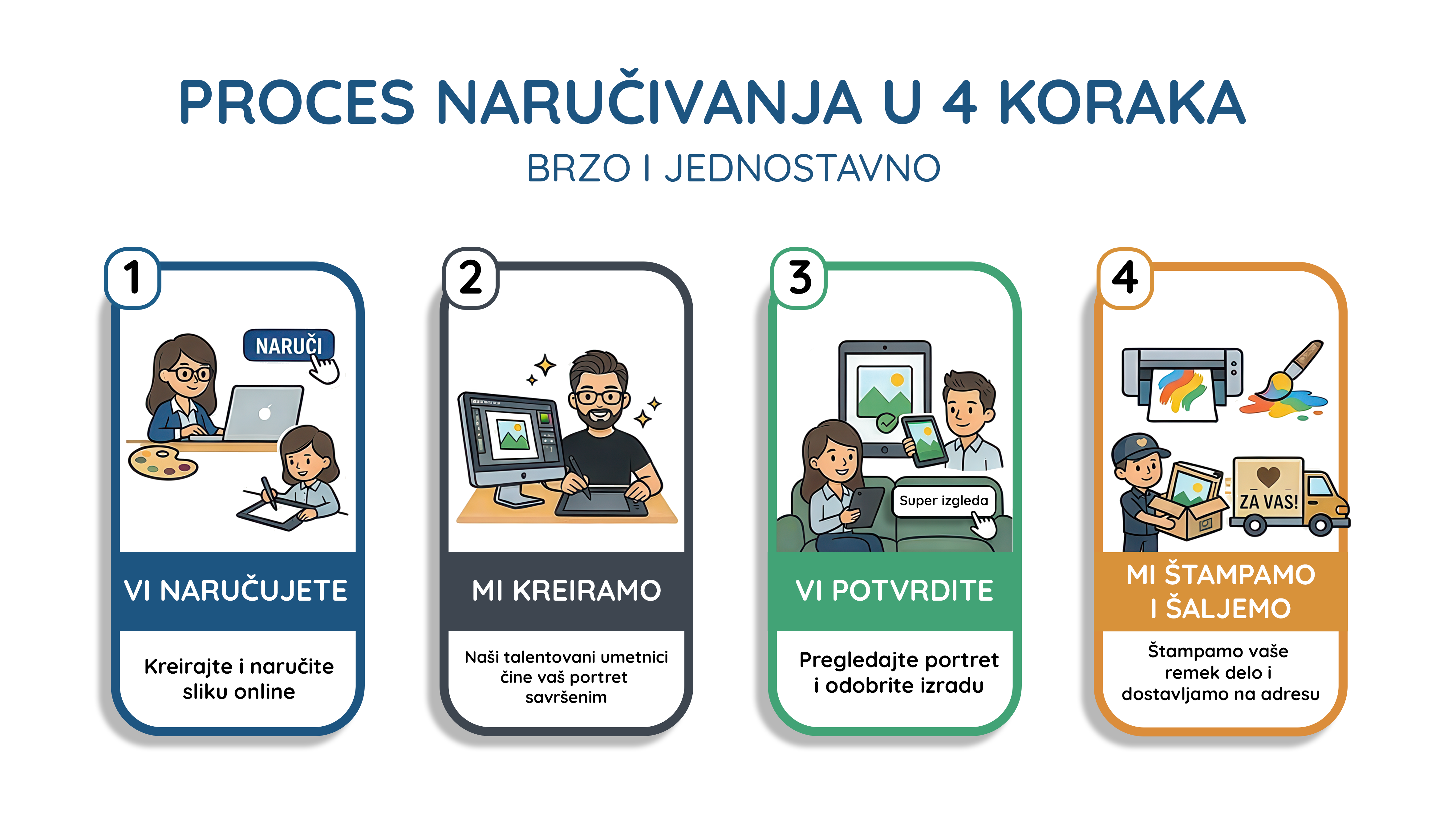 The vast majority of customers approve the portrait after the first version. As much as 99% of customers are satisfied with the digital display and continue with the production without the need for a refund.